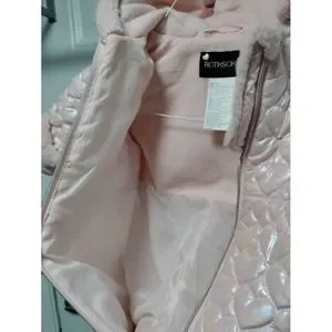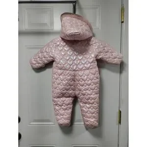 Title: Rothschild & Co Baby Girls Hooded Quilted-Heart Footed Pram Faux-Fur Trim 12M