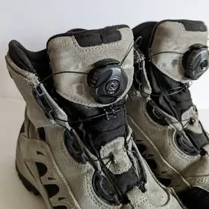 No shoelaces! Convenient and sturdy lacing mechanism holds boots laced with just a gew rotations. Press and turn wheel to lace and lock. Pull wheel out to release when you're ready to take shoes off.