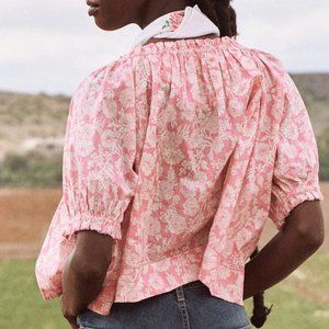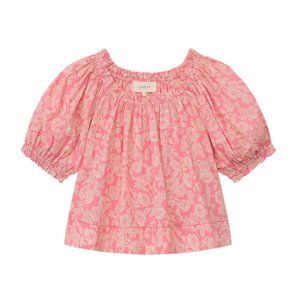 This blush colored Garland Top is the perfect all-occasion blouse. It can be worn for every day activity, a brunch with the girls, or a summer barbecue. The timeless design features an elasticated scoop neck, elbow-length sleeves, and comes in a feminine floral print. Tuck yours into high-rise pants or a skirt styled with camel sandals or heels, sneakers, and accessorize with jewelry.