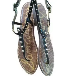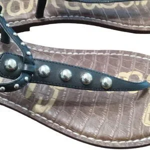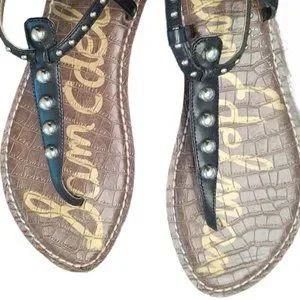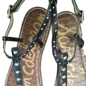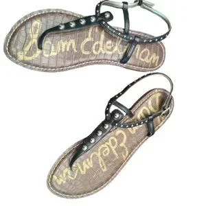 EUC | Sam Edelman | Gigi | Black Leather | Gold Studded Thong Sandal | Size: 10