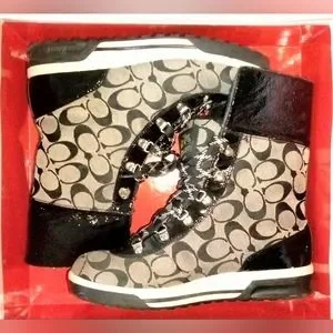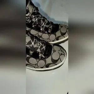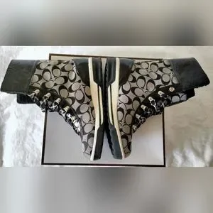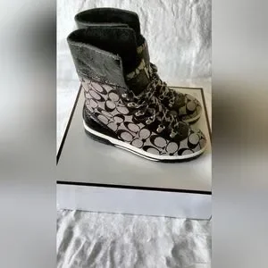 Coach Signature Patterned Black and Grey Tailor Hiking Boots Size 7.5