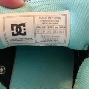 DC skateboard sneakers women’s size 11 mens size 9. Excellent condition.