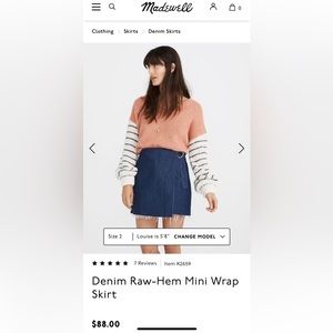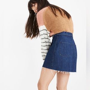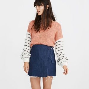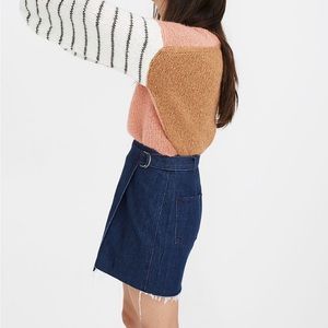 MADEWELL Denim Raw-Hem Mini Wrap Skirt/ Size 4/ MSRP $88/ A-Line Adjustable Belt