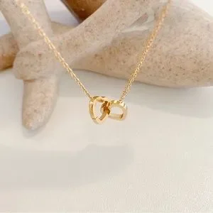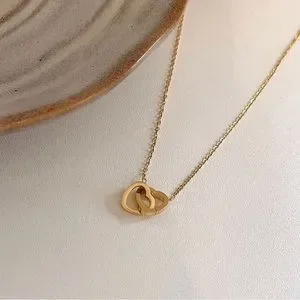 Simple Double Heart Pendant Necklace for Women Couple Stainless Steel