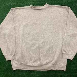 Gray long sleeve crewneck sweatshirt by Mickey Unlimited (Disney) with 90s streetwear hip hop Mickey Mouse and Minnie Mouse graphic. Made in USA. oBoxy oversized fit.