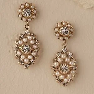 Vintage inspired drop earrings adorned with Swarovski pearls and stones by Ti Adoro Jewelry.