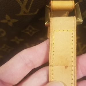 All flaws mentioned are not noticable unless you are looking for them...the Bag is in Excellent Condition overall.