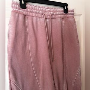 High rise jogger sweatpants from 7 For All Mankind. Elastic and drawstring waistband. Elasticized cuffs at ankles. Front slit pockets. Vintage wash with design seaming. Good used condition, there is pilling/wash wear throughout (pictured), no other flaws. Always open to offers!