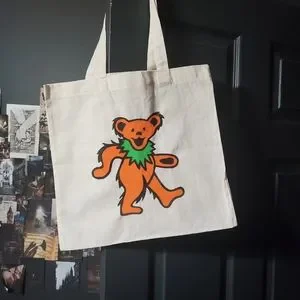 Handpainted Light Weight Canvas Tote Grateful Dead Bear