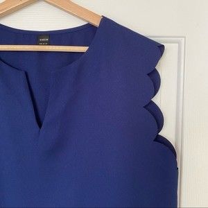 Womens Navy Scalloped Sleeve Tank Top size Large