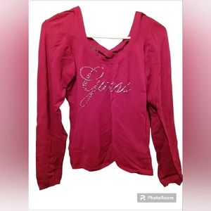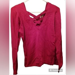 Guess Logo Sweater with Criss-Cross Open Back Wine 🍷 Red & Silver Bling