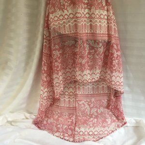 Arden Strapless High Low Dress S Floral Bohemian Boho Pink White Elastic Waist