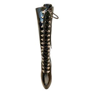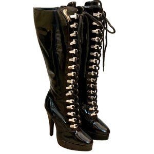 Delicious Knee High Stiletto Patent Leather Lace Up Platform Boots 6 Troy