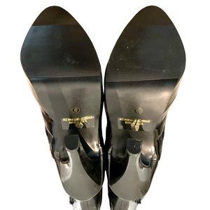 Delicious Knee High Stiletto Patent Leather Black Lace Up Platform Boots 6 Troy
