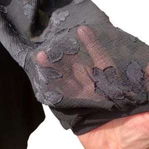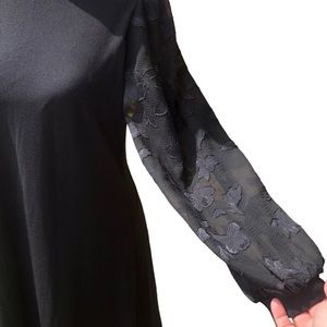 This little black dress from the brand CeCe has sheer sleeves with a floral print. Lightly lined, slightly puffed long sleeves. 95% polyester, 5% spandex. Size small. Retails for $120. Some white spots on armpit (pictured and discounted). Classic elegant style. Your satisfaction is very important to me, please let me know if you have any questions before purchasing. Thank you for visiting my listing and Happy Shopping!