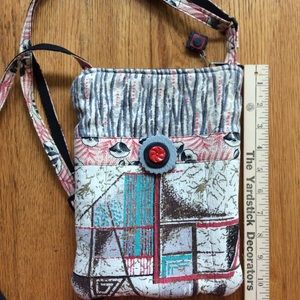 In good gently used condition, Old Bagzz vintage fabric bag. No stains/ odors. Can be used as a backpack or shoulder/crossbody. 4 Interior slip pockets & a front zip pocket. Zip top closure.