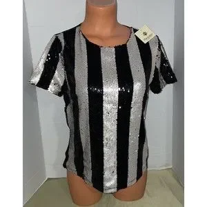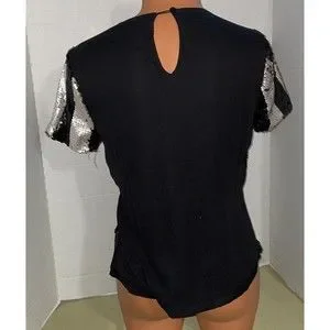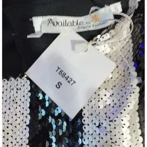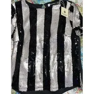 New-black white sequins beads evening formal cocktail blouse Top SM