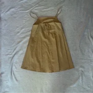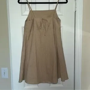 tan/ small brown stripes square neck tie back mini dress babydoll