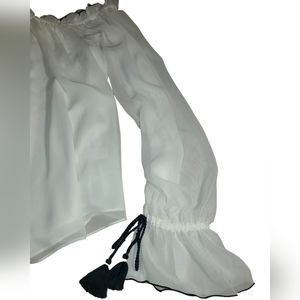22in length of sleeves from elastic off shoulder to elastic at wrist