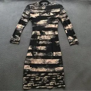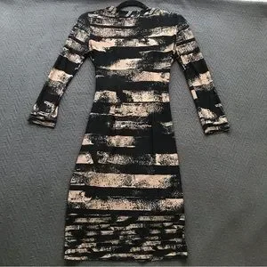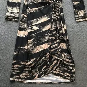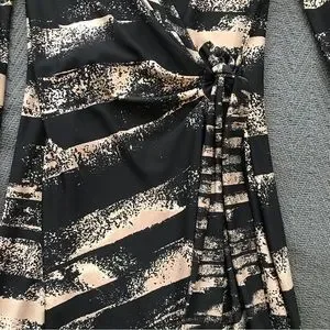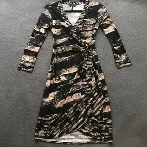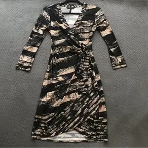 NWOT BCBGMaxAzria True Wrap Dress Black Tan Print Long Sleeve XS Petite