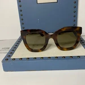 Gucci Sunglasses. Series number: GG0208S. Color code: 002 Size: 49. Shape: Butterfly. Lens Width: 49 mm. Lens Bridge: 16 mm. Arm Length: 140 mm. 100% UV Protection. Non-Polarized. Frame Material: Plastic. Frame Color: Havana Brown . Lenses Type: Brown . Rim Style: Full-Rim. Gucci Havana Brown Butterfly Ladies Sunglasses GG0208S