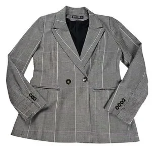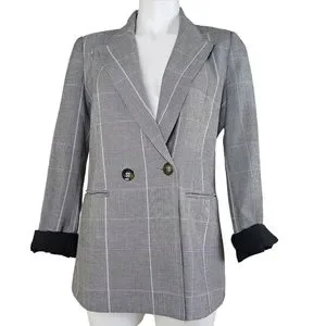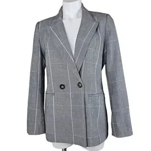 7th Avenue Design New York and Company Plaid Black White Blazer Women's Size 4