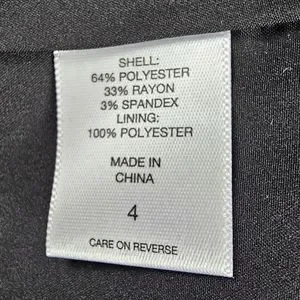 Fabric: 64% Polyester 33% Rayon 3% Spandex