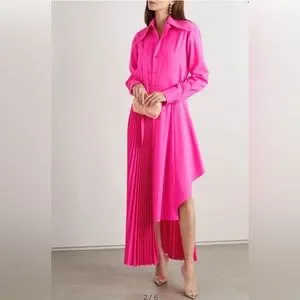 Christopher John Rogers Pleated Asymmetric Skirt Neon Pink Wool Blend