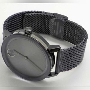 Grey IP stainless steel case with a grey IP stainless steel mesh bracelet. Fixed grey IP stainless steel bezel. Grey dial with grey IP hands. Movado dot appears at the 12 o'clock position. Dial Type: Analog. Quartz movement. Scratch resistant K1 crystal. Pull / push crown. Solid case back. Round case shape, case size: 40 mm. Sliding clasp. Water resistant at 30 meters / 100 feet. Functions: hour, minute. Bold Evolution Series. Dress watch style. Watch label: Swiss Made. Movado Bold Evolution Quartz Grey Dial Men's Watch 3600902.