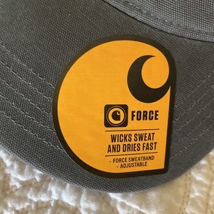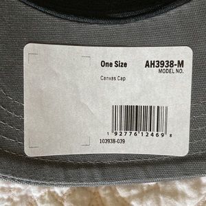 Carhartt canvas cap. Wicks sweat and dries fast. Velcro strap in back to adjust size. Brand new with sticker labels.