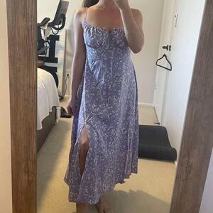 boho Floral Tie Front Ruched Bust Split Thigh Cami Dress purple
