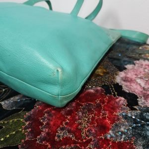 This is Vintage..Still in Good shape..does have some wear..see all pics. Features 2 large outside pockets that snap..They are good along w the zipper..inside spacious and in good shape. Handles are good. Approx drop length is 15 inches. All Genuine leather. Made in France.