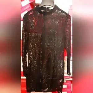 Justfab size Junior XXL Black lace long sleeve shirt could be a L/XL short dress brand new never worn