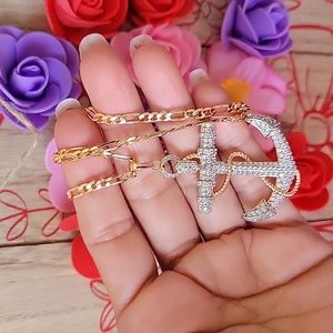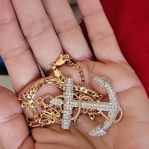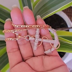 necklace 18k Gold Plated alta calidad de ancla para hombre o mujer con circonia