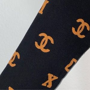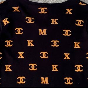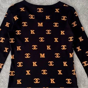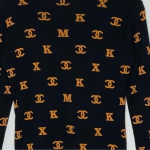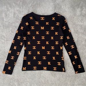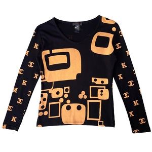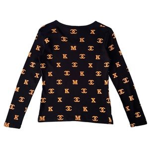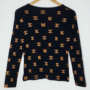 2 S Custo Barcelona Chanel Logo Black Bronze Long Sleeve V Neck Tee Shirt Top