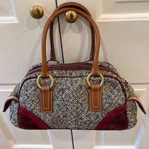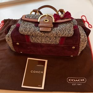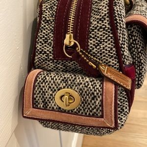 Coach Vintage Tweed Velvet and Leather Hand Bag