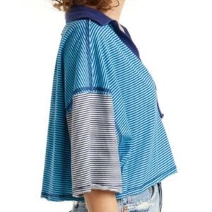 Add the perfect vintage-inspired touch to any look with this forever versatile polo top featured in a reversible print design and boxy, cropped silhouette with wide sleeves for added shape.