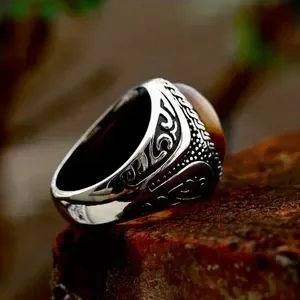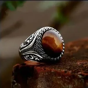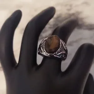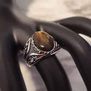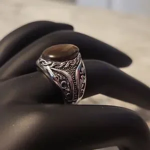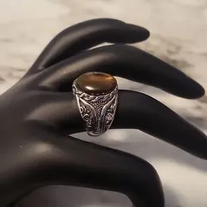 Vintage Tiger Eye Silvery Ring Bohemian Style Size 8