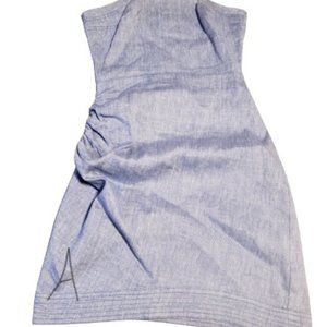 Perfect for layering with white shirting, the label's strapless Tatyana dress comes in a chambray linen blend. Fitted silhouette. Ruching at the hip. Topstitched hem. Concealed back zip closure.