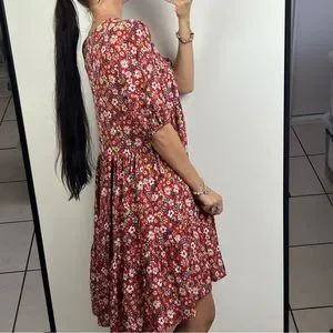 Dreamcatcher Skylar Mini Dress Red Floral Tiered Boho Hippie Size S 8 - NWT