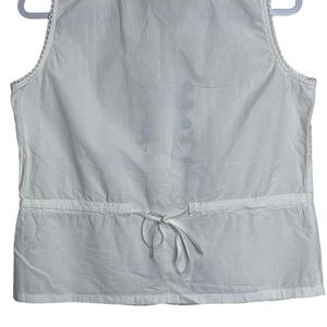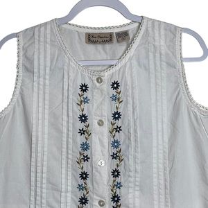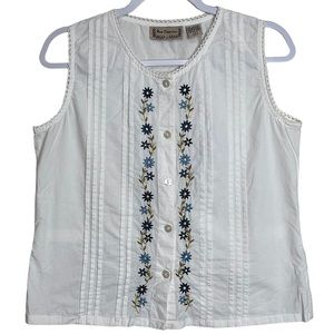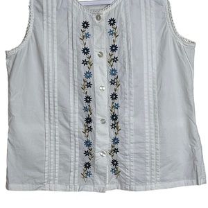 New Direction Floral Embroidered White Top Crochet Sleeveless Button Up Size M