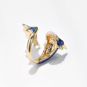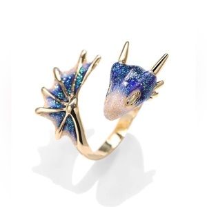 ✨3/$38 New Drip Glaze Glitter Blue Lucky Dragon Adjustable Statement Ring