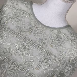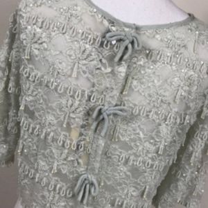 Aqua beaded and sequin short sleeve top
