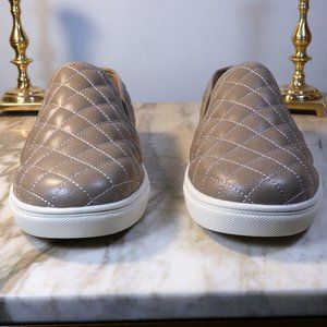 From designer: "Show off your fierce attitude with ECENTRCQ, the perfect slip on sneaker with a quilted leather upper with rubber out sole. Rock ECENTRCQ with some knee-high printed socks, pleated mini and simple tank."
