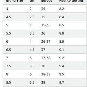 Size 7.5 Wide - like new ToaR - Manufacturer says feed back tells them they run 1/2 -to 1 size small - but they are COMFORTABLE.