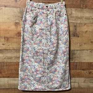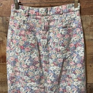 Vintage Floral Denim Midi Pencil Skirt Size 10
