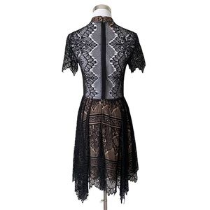 Lulu’s Ryse the Label Katie Black and Nude Lace Short Sleeve Skater Dress