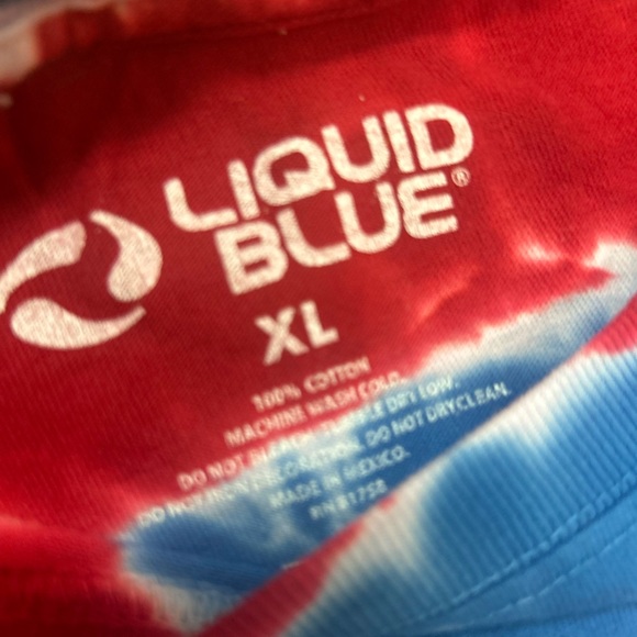 In the 80s Liquid Blue started out making tie dye shirts for the Grateful Dead. In the 90s, 2000s, and now Liquid Blue continues making tie dye shirts for the Grateful Dead. Dyed and printed in the USA by Liquid Blue