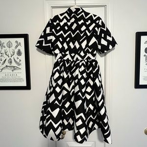 AMAZING kate spade dress from the Madison Ave Collection. Black and white abstract pattern. Structured fit. Thick fabric and fully lined. Buttons down the front.