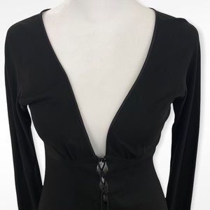 VTG Kenth Andersson Black Deep V Tie Front Long Sleeve Fitted Maxi Dress